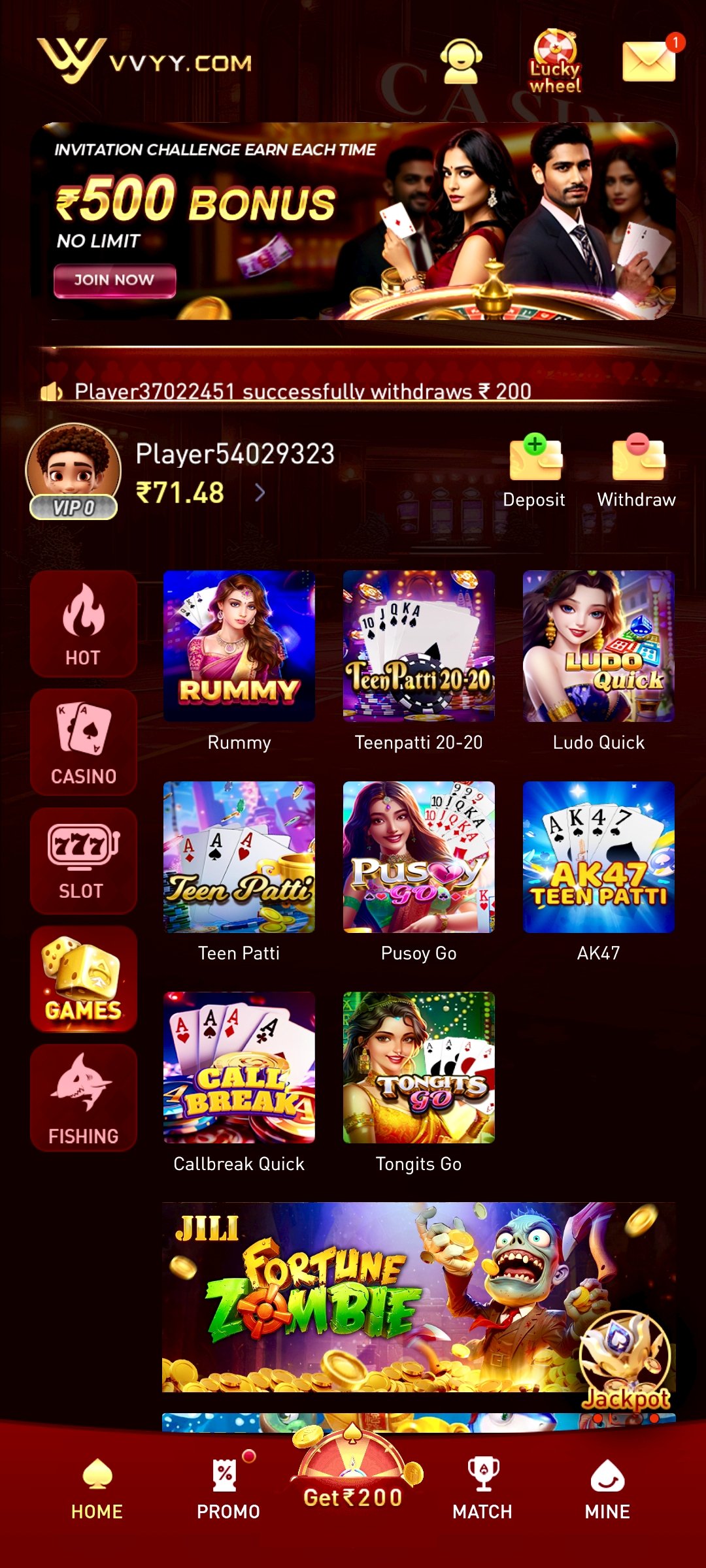 One of the most attractive features of “FN7 Game” APK (FN7.Game APK Downlaod)is the Spin & Win cash bonus. After signing up, players can spin the reward wheel and get up to ₹500 in their wallet. This makes the app more exciting because you start earning right from day one without even making a deposit.